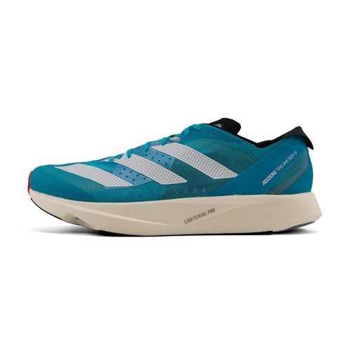 Het Primegreen bovenwerk van lichtgewicht mesh is voor een deel gemaakt van gerecycled materiaal en is 8 gram lichter dan dat van zijn voorganger. De pasvorm rond de hiel en de middenvoet is verbeterd om de voet nog beter op zijn plaats te houden tijdens je race.