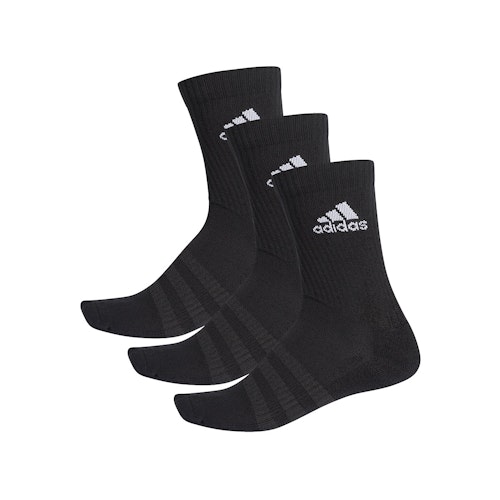 • De adidas 3 Stripes Cushioned Crew Socks 3-pack voor zowel dames als heren zijn comfortabele hardloopsokken. De sokken zijn namelijk gemaakt van zacht materiaal met een mix van katoen. De anatomische en nauwsluitende pasvorm zorgen samen met de voetboogondersteuning voor een stevig en stabiel gevoel.