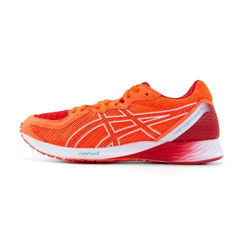 Artikelnummer: 1012A733-600 Artikelgroep: Wedstrijdschoenen Kleur: Oranje Geslacht: Dames Merk: ASICS Schoentype: Neutraal Demping: Weinig / gemiddeld Voorvoethoogte: 10 mm Hielhoogte: 20 mm Offset: 10 mm Responsiviteit: Weinig / gemiddeld Ondersteuning: Weinig Gewicht: ca. 165 gram Breedte: Normaal