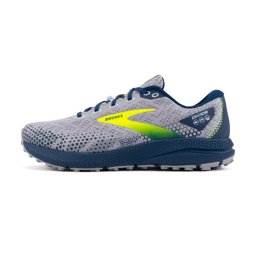 De tussenzool met zachte DNA LOFT-versteviging zorgen voor soepele overgangen, plus flexibiliteit en bescherming van weg naar trail. Het zachte DNA LOFT demping en een Segmented Crash Pad in de buitenzool zorgen voor soepelere overgangen van verschillende ondergronden. Betreed gemakkelijk de off-road paden, dankzij de hoogwaardige nat-droog tractie van onze TrailTack rubberen buitenzool. Aan de zijkanten van de schoen bevinden zich sleuven die zorgen voor de afwatering. De Brooks Divide 3 is ideaal voor beginnende en allround traillopers.