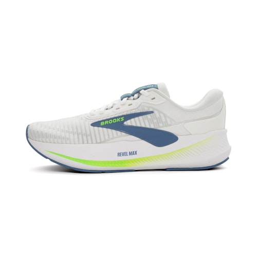 De Revel Max heeft in de tussenzool het DNA LOFT v2 foam van Brooks. Het foam is licht van gewicht door de juiste balans tussen hoeveelheid rubber en lucht in het foam. Het foam beschikt over de DNA-technologie van Brooks, waarbij het foam zich aanpast aan jouw loopstijl. Hierdoor beschikt de schoen over een dempend foam dat zorgt voor een soepele overgang van hiel naar teen. De schoen heeft een GlideRoll Rocker profiel, die is voorzien van opvallend vormgegeven schuine randen en vering geometrie bij de tenen. Dit zorgt voor een optimale afwikkeling van de voet.Bovenwerk