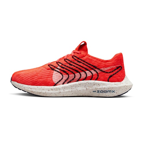 De Pegasus Turbo Next Nature is voorzien van Flyknit technologie met sterke vezels voor een licht bovenwerk die tegelijkertijd stevigheid biedt. Gerecyclede garen, veters en voering aan de binnenkant maken dat deze snelle schoen een duurzame keuze is.