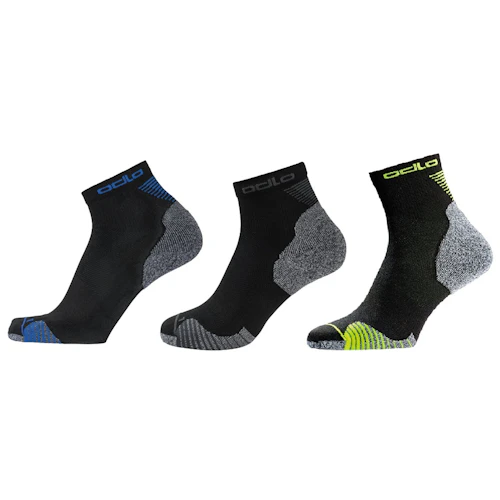 • De Odlo Ceramicool Quarter Socks 3-pack voor zowel dames als heren zijn 3 paar comfortabele hardloopsokken. De sokken zijn speciaal ontworpen voor hardlopers. De Ceramicool-technologie in de sokken houdt de voeten koel door middel van keramiekdeeltjes in de sokken die de huid effectief koelen. Vocht wordt effectief afgevoerd en de sokken bieden een hoog ademend vermogen. Bij de hiel en tenen zijn de sokken extra gevoerd voor ondersteuning en bescherming.