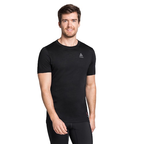 Artikelnummer: 110642-15000 Artikelgroep: T-Shirts Pasvorm: Nauwsluitend Kleur: Zwart Geslacht: Heren Merk: Odlo Materiaal: 50% merino wol, 50% lyocell tencel