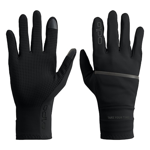 Artikelnummer: 763400-15000 Artikelgroep: Handschoenen Kleur: Zwart Geslacht: Unisex Merk: Odlo Materiaal: 73% gerecycled polyester 27% elastaan