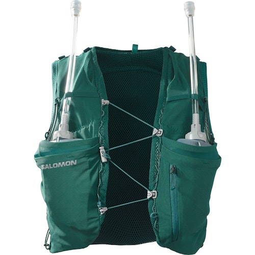 • De Salomon Adv Skin 5 Set is een comfortabele rugzak. Deze rugzak is voornamelijk geschikt om een comfortabel gevoel te geven tijdens een duurloop. In deze rugzak kun je veel kwijt, je kunt zelfs je stokken meenemen. Een grote achterzak en twee zakken voor je items voor. Daarnaast bevat de rugzak twee Salomon flasks van 500 ml.