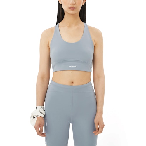 Deze sport-bh biedt medium support en is gemaakt voor sportactiviteit als yoga, pilates en stretching. De bh kan bij rustige hardlooprondes gedragen worden wanneer je een kleine cupmaat hebt, bij intensievere hardloopsessies of wanneer je geen kleine cupmaat hebt, is een high-impact bh aan te raden De Salomon Shakeout Core Sports Bra zorgt voor fijne ondersteuning zonder een opgesloten gevoel.