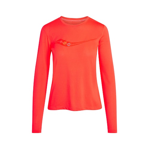 Artikelnummer: SAW800405-VRA2 Artikelgroep: Shirts Pasvorm: Standaard Eigenschappen: Reflecterend Kleur: Oranje Geslacht: Dames Merk: Saucony Materiaal: 100% gerecycled polyester