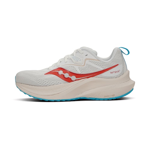 Artikelnummer: S10973-215 Artikelgroep: Allround loopschoenen Collecties: Saucony Tempus Kleur: Wit Geslacht: Dames Merk: Saucony Schoentype: Antipronatie Demping: Gemiddeld / veel Voorvoethoogte: 25 mm Hielhoogte: 33 mm Offset: 8 mm Responsiviteit: Gemiddeld Ondersteuning: Veel Gewicht: 233 g Breedte: Normaal Gewicht: 200-300 gram Stack height: 30-40mm (hoog)